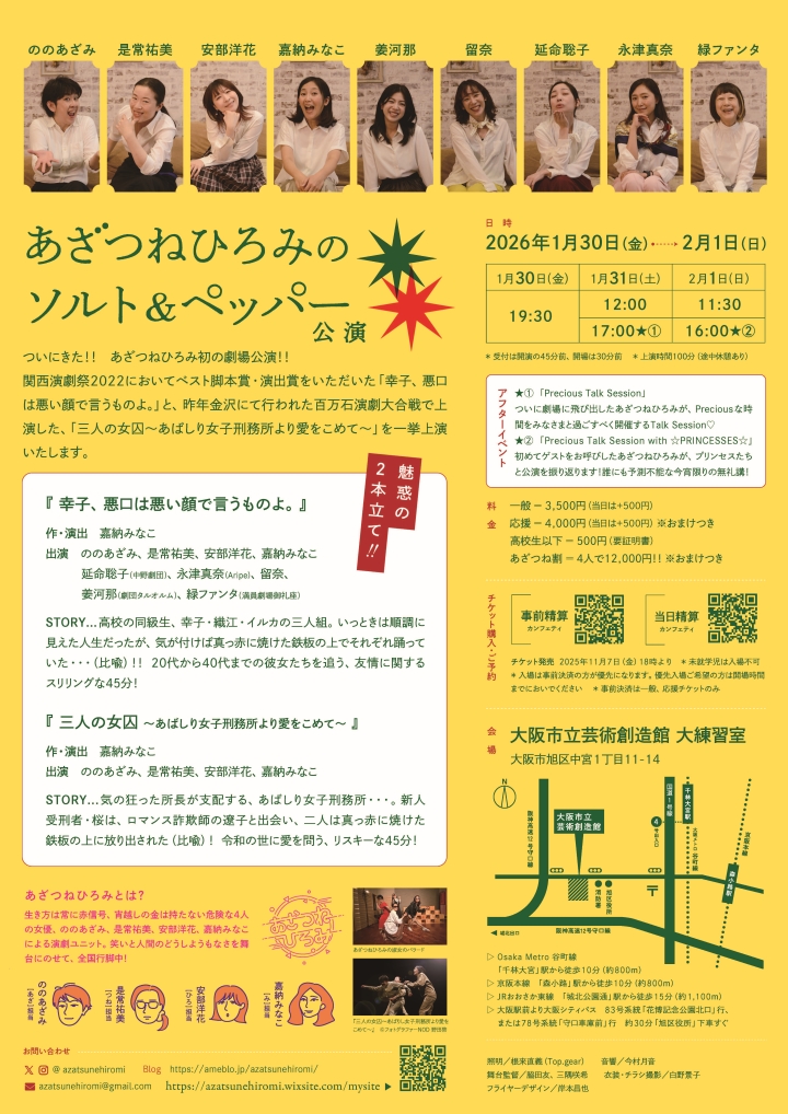 あざつねひろみのソルト&ペッパー公演 魅惑の2本立て『幸子、悪口は悪い顔で言うものよ。』『三人の女囚〜あばしり女子刑務所より愛をこめて〜』