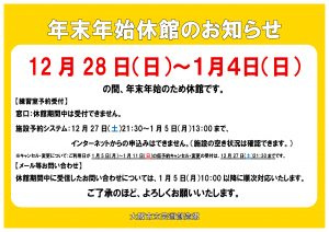 【重要】年末年始休館のお知らせ(12/28-1/4)
