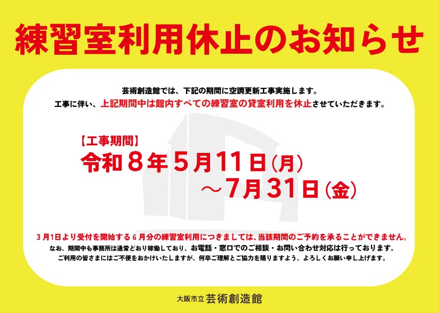 【重要】空調更新工事に伴う練習室利用休止のお知らせ
